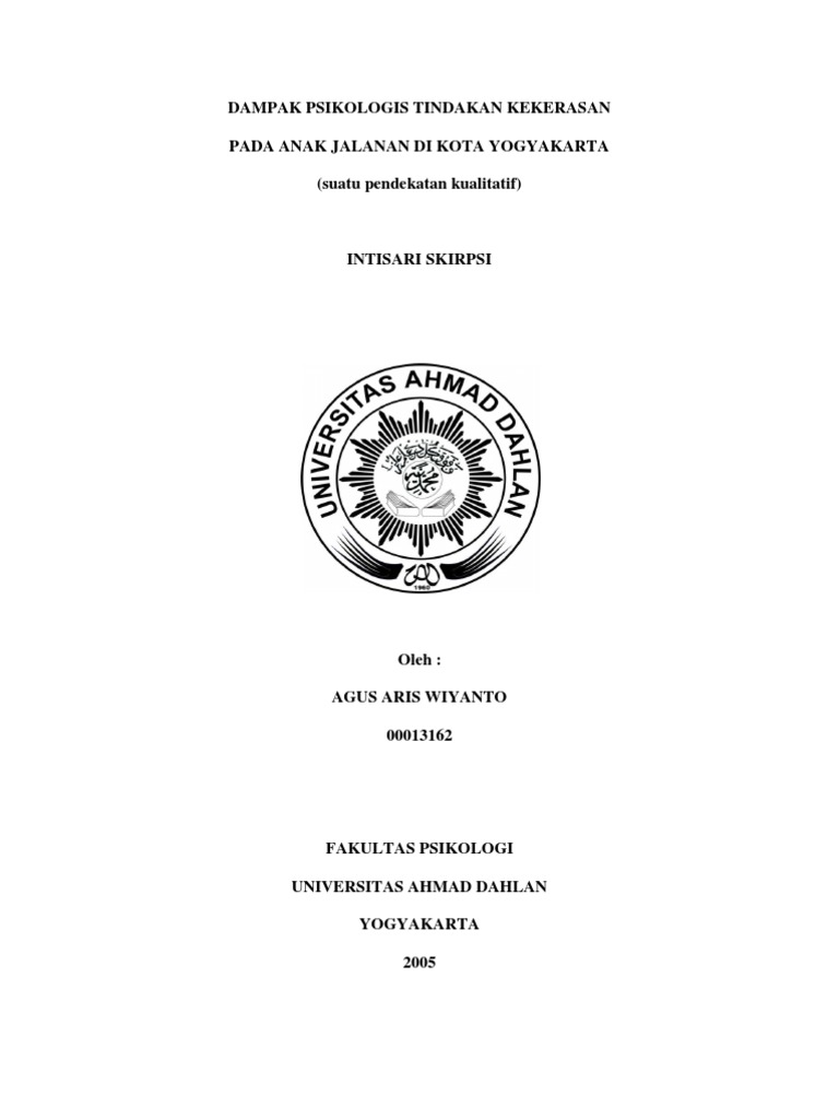 Skripsi Psikologi Uad Dampak Psikologis Tindakan Kekerasan Anak Jalanan Pdf