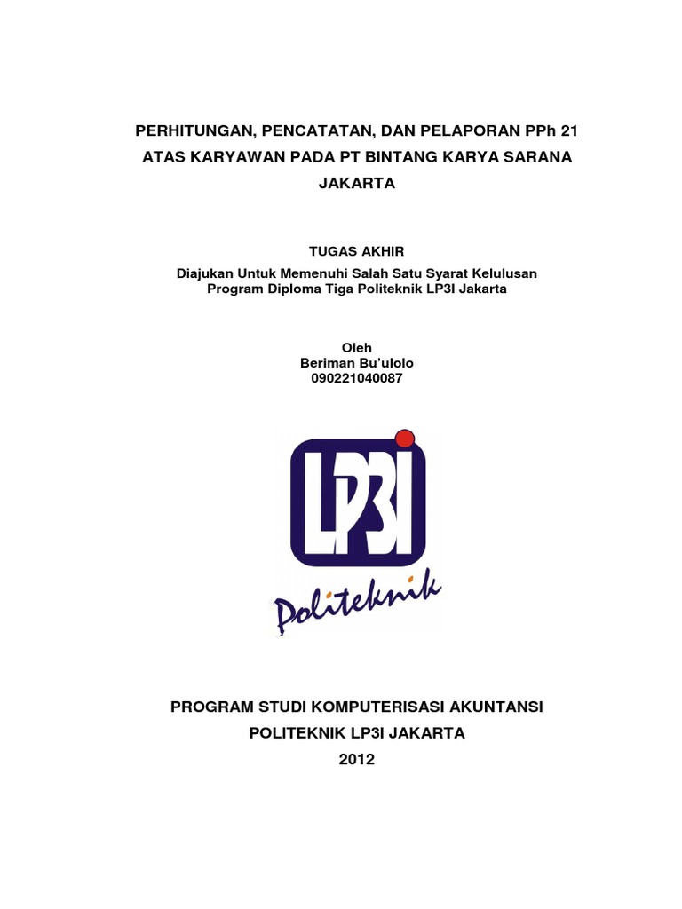 Direktur amik bsi jakarta 2. Biaya pembuatan programnya adalah rp. Proposal tugas akhir diploma 3 (d3) komputerisasi akuntansi 1.judul penelitian sistem informasi eksekutif keuangan pada pengadilan agama sumber kabupaten cirebon dengan.