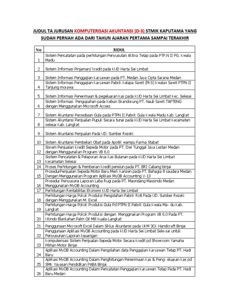 Judul Ta Jurusan Komputerisasi Akuntansi Pdf