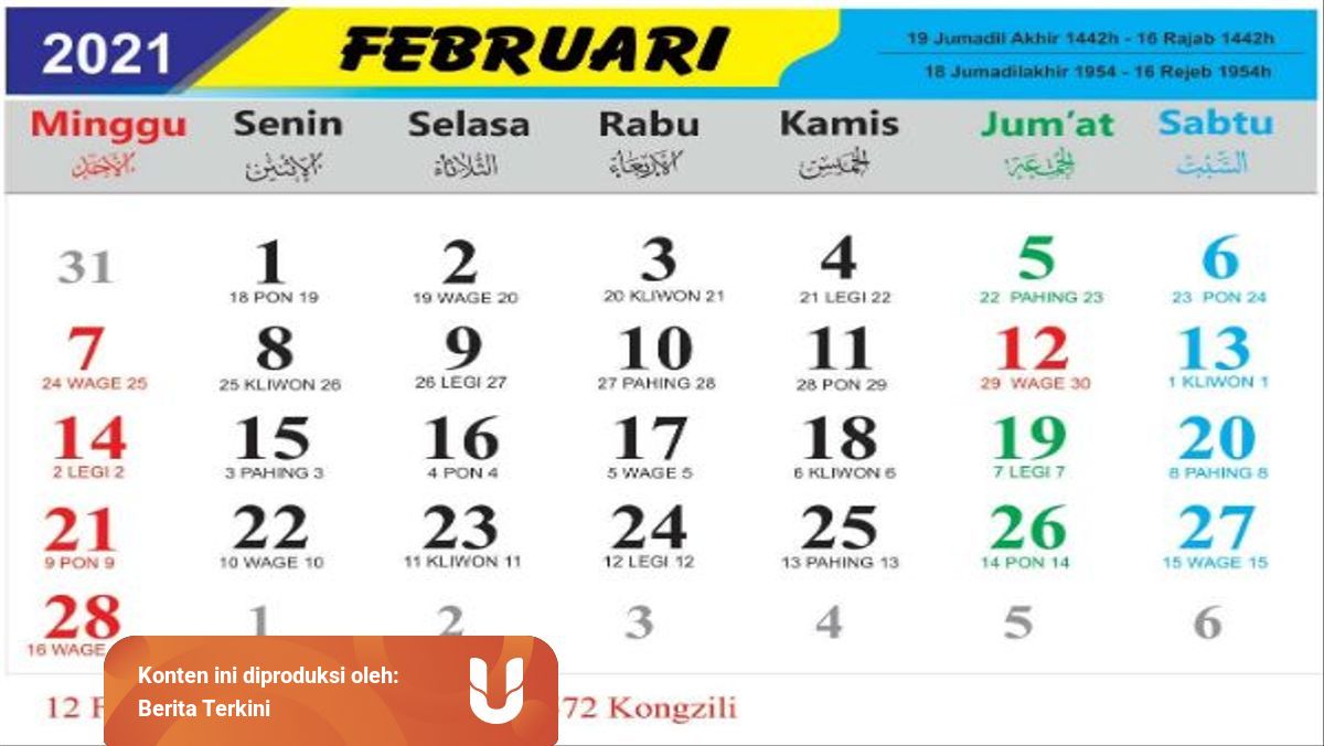 Kalender Jawa 2021 Februari Untuk Puasa Weton Kumparancom