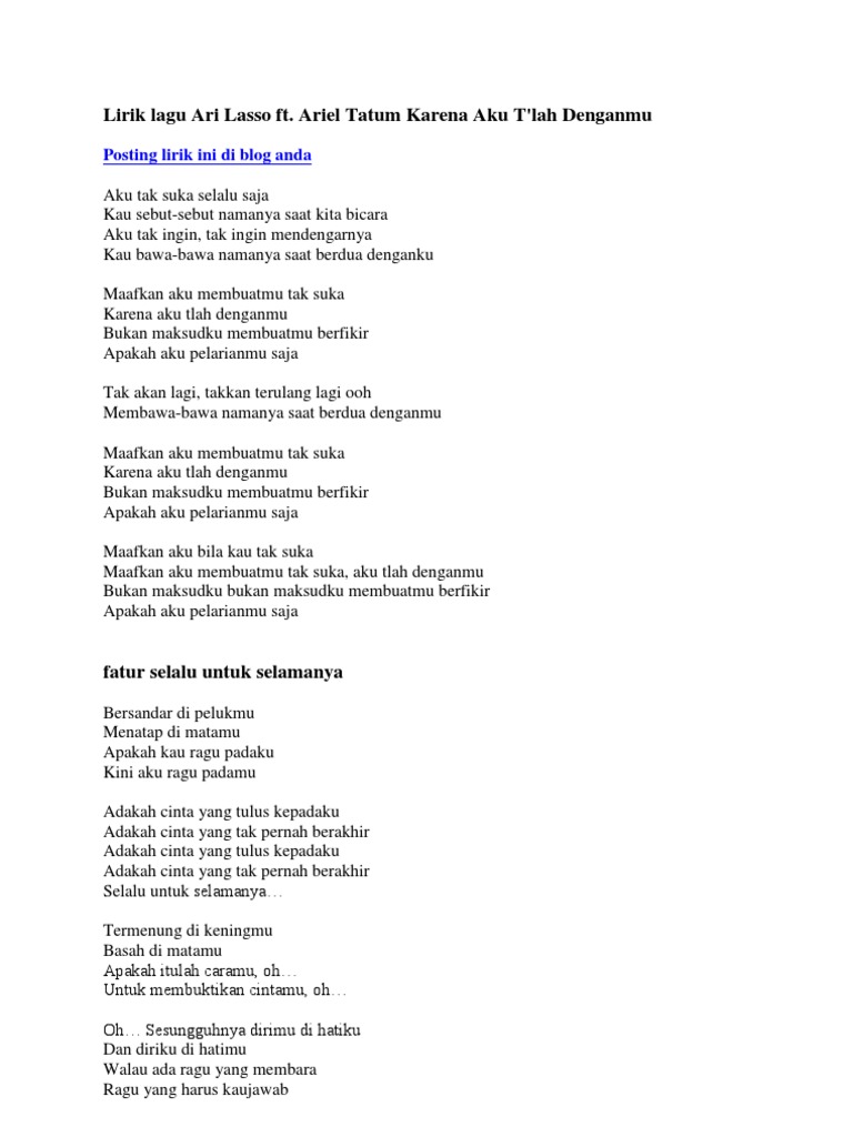 Adakah cinta yang tak pernah berakhir. Tips pencarian lirik favorit anda. Fatur yang memiliki nama lengkap faturachman kelahiran tanjung, kalimantan selatan, 16 desember 1968 adalah penyanyi dan aktor indonesia.