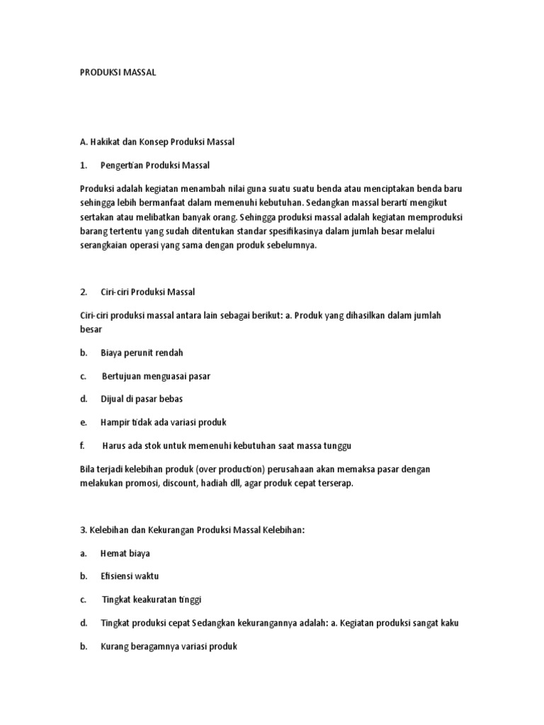 Jelaskan Sifat Produk Dari Proses Produksi Massal