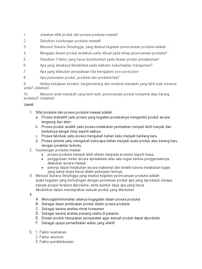 Menurut sukaria simulingga, yang disebut kegiatan perencanaan produksi adalah. Proses produksi ini menitikberatkan pada proses perubahan bentuk dari bahan baku menjadi barang jadi. Sifat produk dari proses produksi massal adalah 1.