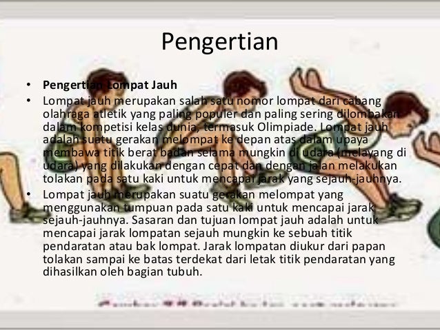 Memberikan daya tahan pada tubuh. Lompat jauh adalah gerakan melompat ke depan atas dengan membawa titik berat badan selama mungkin di udara. Kaki yang menumpu pada balok tumpuan terlebih dahulu dalam melakukan lompat jauh yaitu.