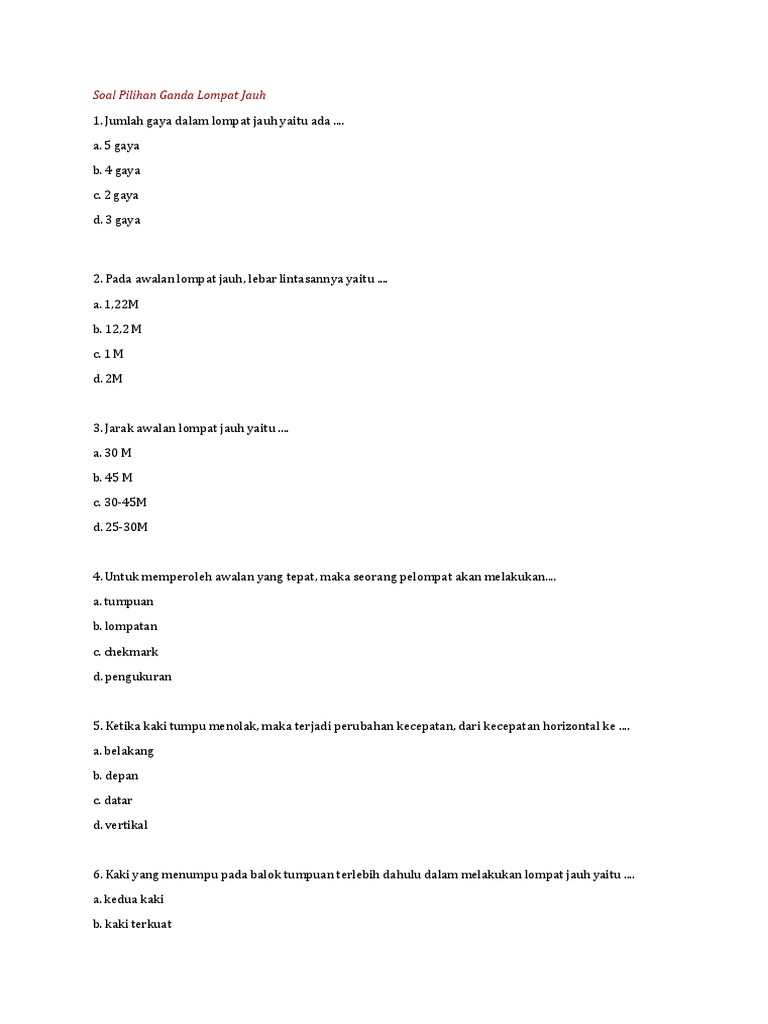 45 Soal Tentang Lompat Jauh Dan Jawaban Essay Pilihan Ganda Portal Guru Indonesia