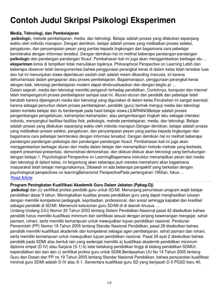 Contoh Judul Skripsi Psikologi Eksperimen Pdf